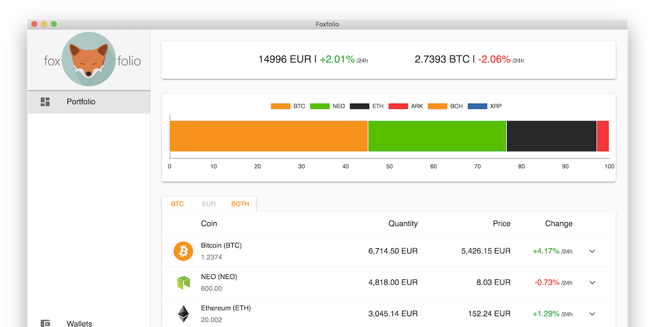 Github Foxfolio Foxfolio Desktop Cryptocurrency Portfolio Management Application Which Automatically Retrieves Balances And Trades Using Exchange Apis